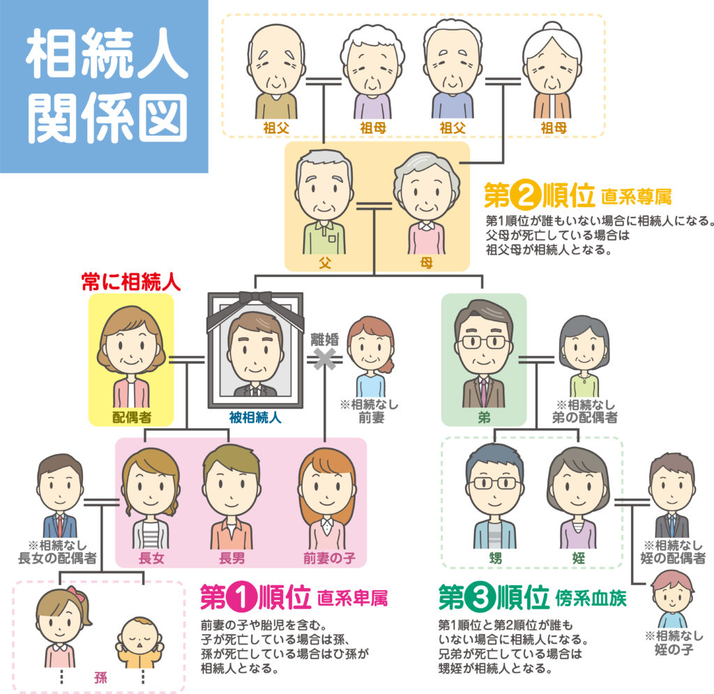 ここでは簡単に相続人となる人たちの範囲を説明いたします。